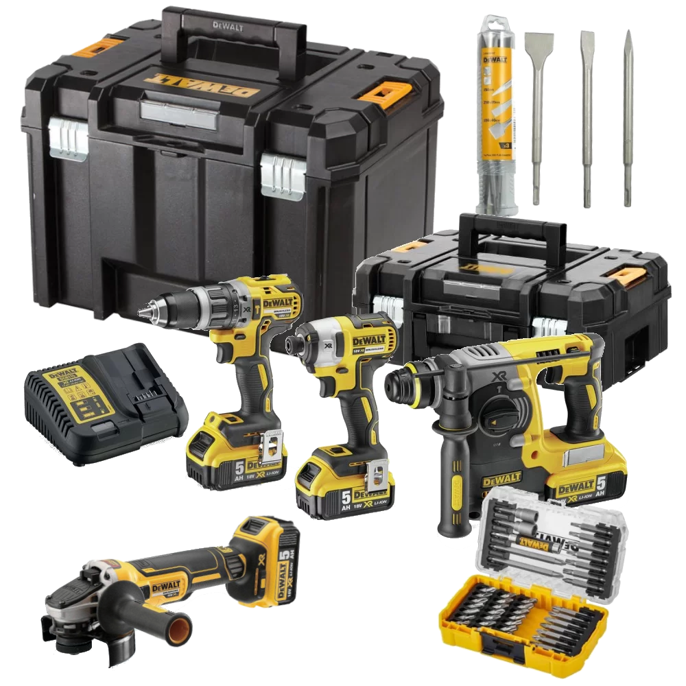 - Acest set de 4 scule electrice Dewalt va da posibilitatea de a avea cele mai uzuale scule electrice si de a beneficia de mobilitatea oferita de alimentarea prin acumulatori.