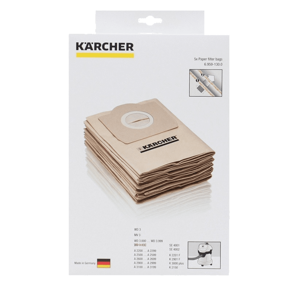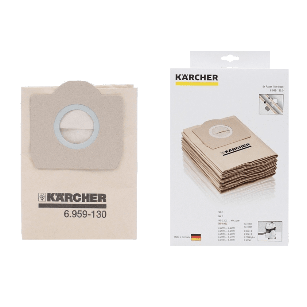 - Setul Karcher 6.959-130.0 contine 5 saci din hartie, cu doua straturi, caracterizati de performanta de filtrare excelenta pentru aspiratoare.