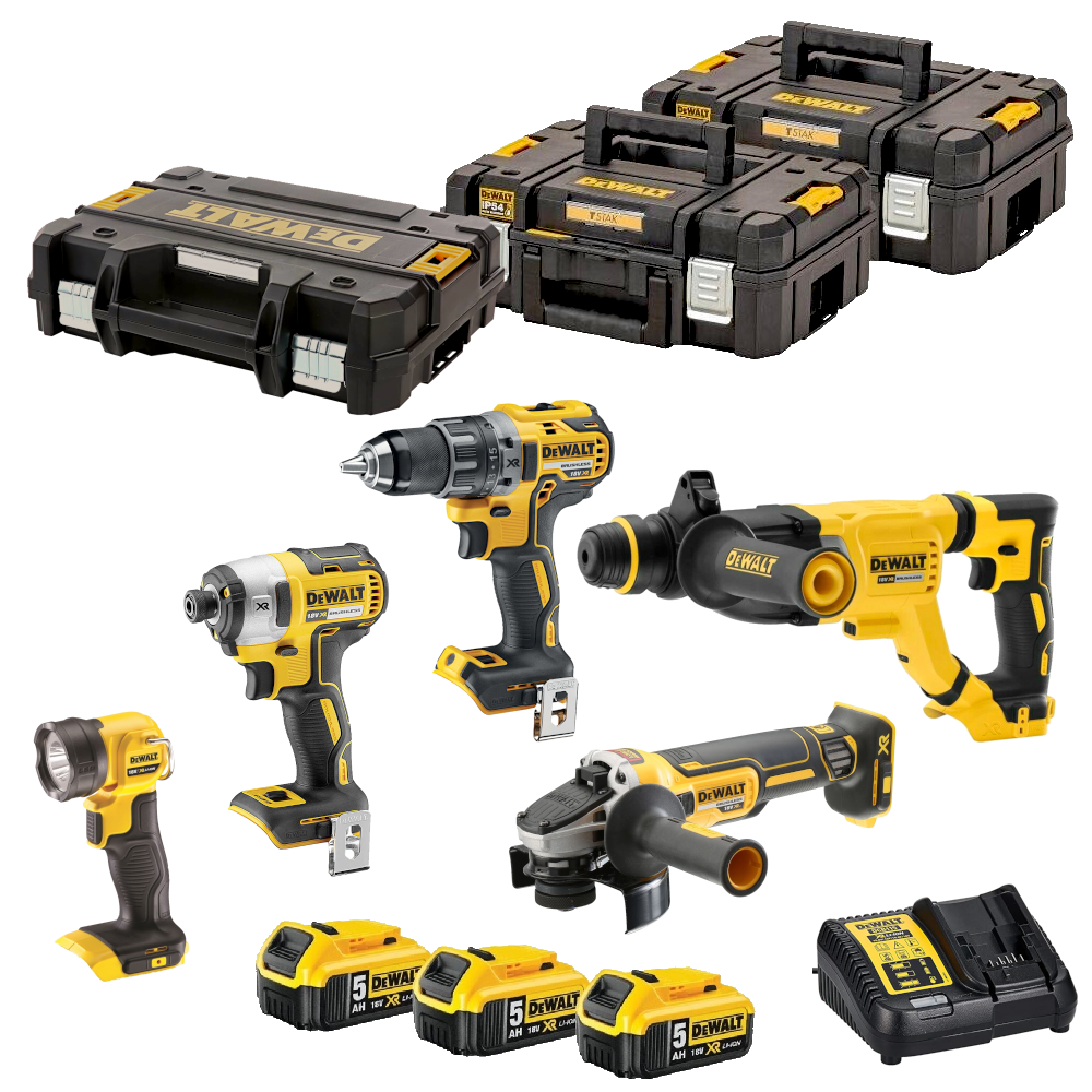 Set 5 scule cu 3 acumulatori DeWalt DCK585P3T
