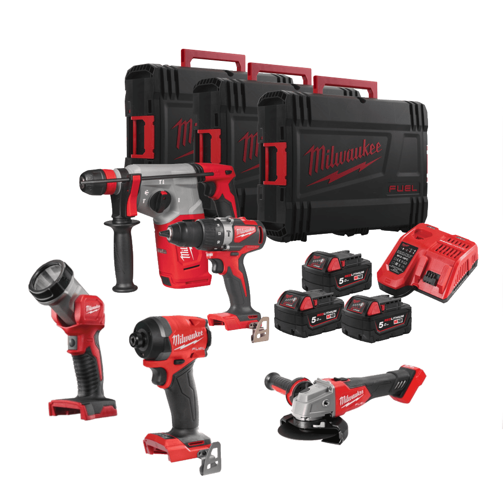 Set 5 scule cu 3 acumulatori Milwaukee M18 FPP5-503X
