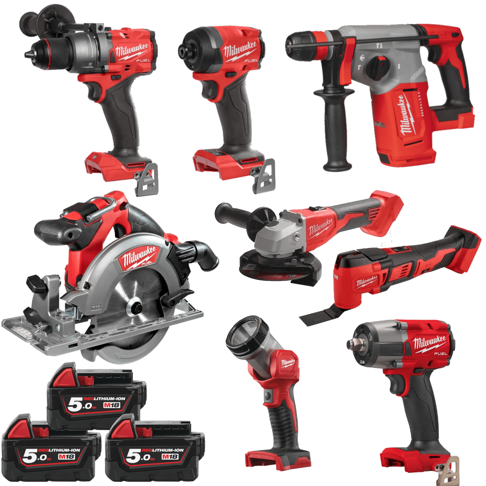 Set 8 scule cu 3 acumulatori Milwaukee M18 FPP8A-503B