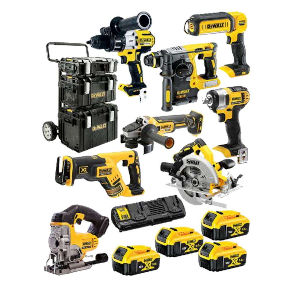 masina gaurit, masina insurubat, cheie impact, ciocan rotopercutor, fierastrau sabie, fierastrau circulat, fierastrau pendular, polizor unghiular, laterna LED, incarcator, acumulatori, dewalt