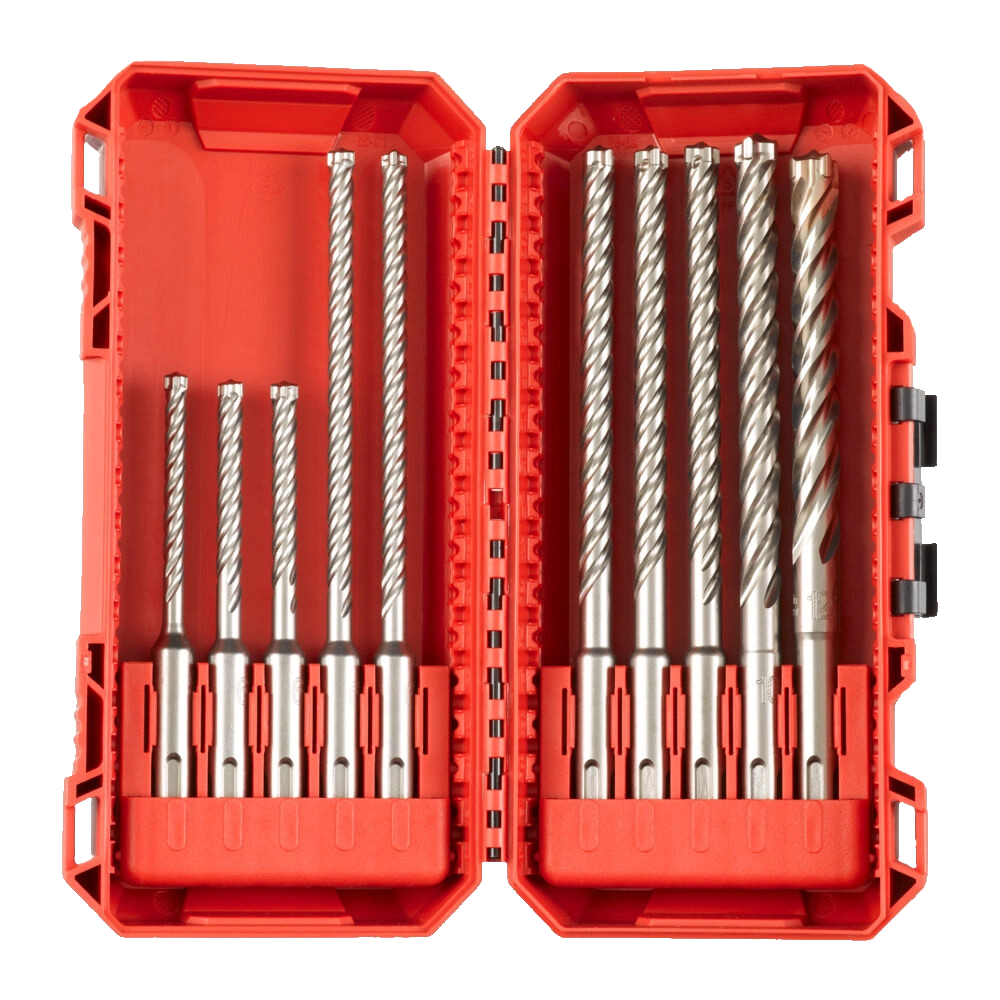 3.Set burghie Milwaukee MX4 SDS-Plus cu 4 caneluri – 10 piese