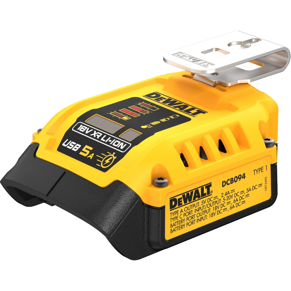 - Incarcatorul DCB094 foloseste tehnologia USB Power Delivery cu incarcare bidirectionala, astfel incat sa-l puteti utiliza pentru a va incarca acumulatorii de 18 V sau sa il utilizati ca o sursa de alimentare mobila care va incarca dispozitive mobile prin portul USB-C