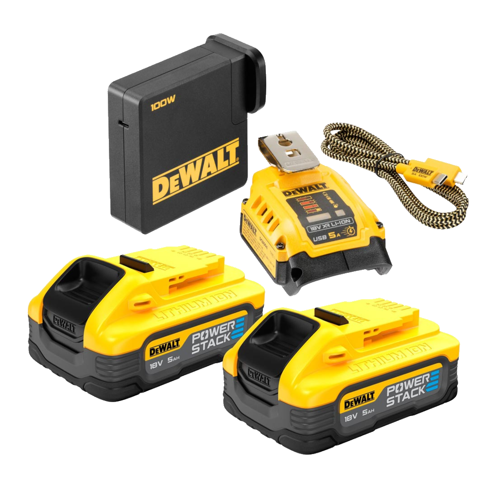 - Port USB-C 5A 100W pentru incarcare super-rapida (incarca o baterie de 18 V XR 5.0 Ah in 60 de minute).