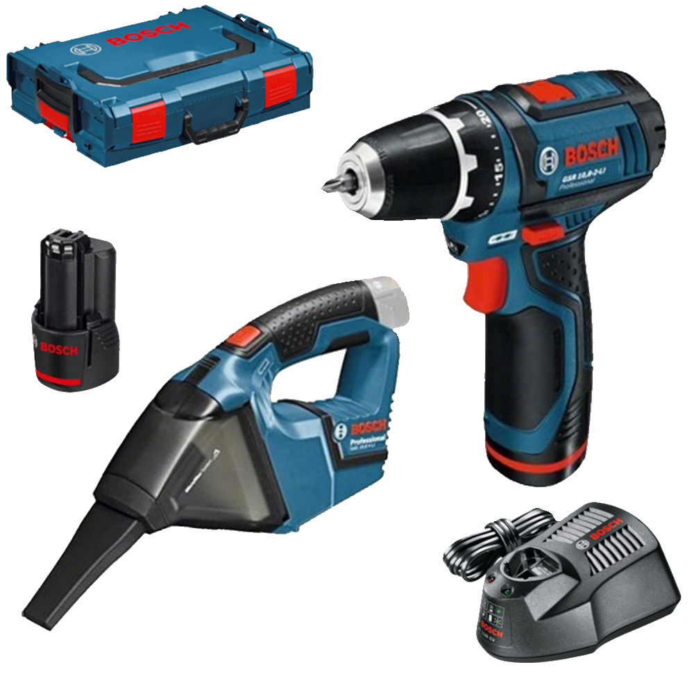 Set masina de insurubat si aspirator cu 2 acumulatori Bosch GSR 10.8 si GAS 10.8