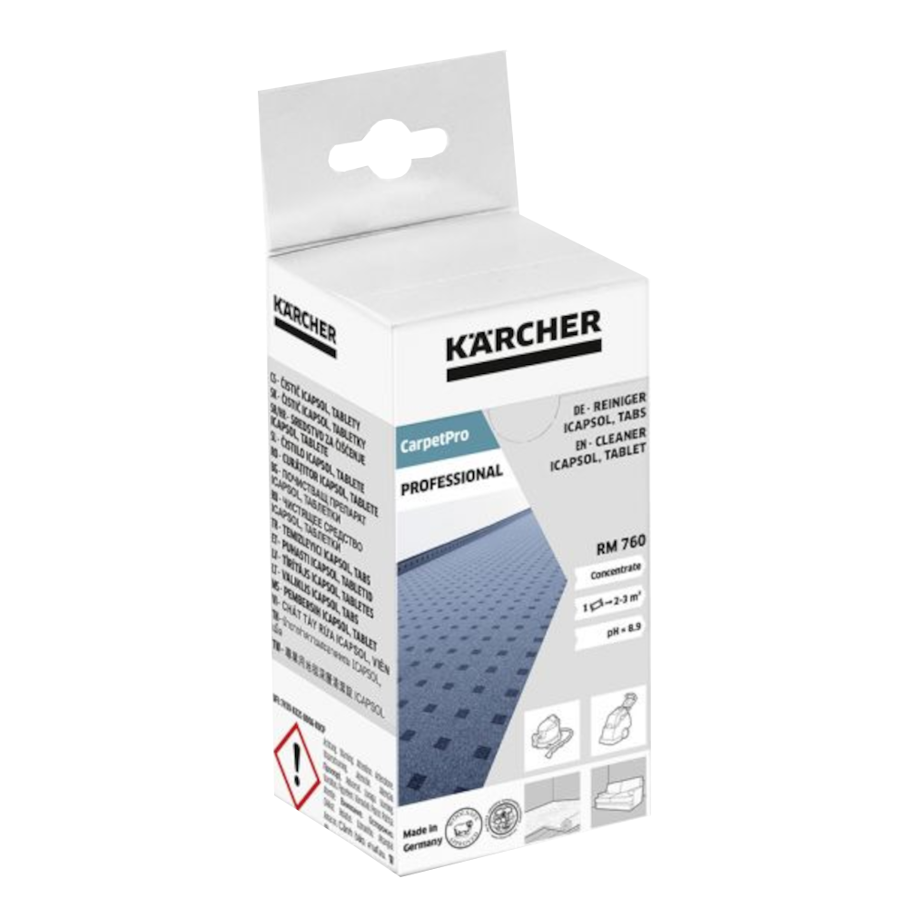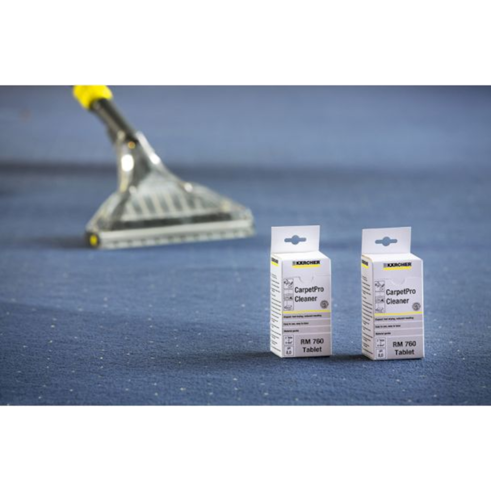 - Detergentul pentru curatarea covoarelor Karcher RM 760, 6.295-850.0, sub forma de tablete este ideal pentru aspiratoarele cu injectie-extractie, cu performante excelente de curatare
