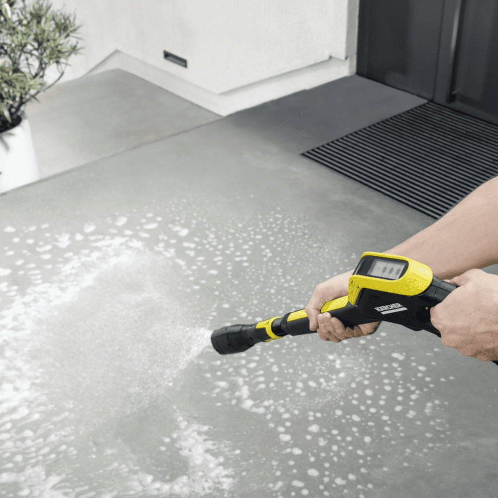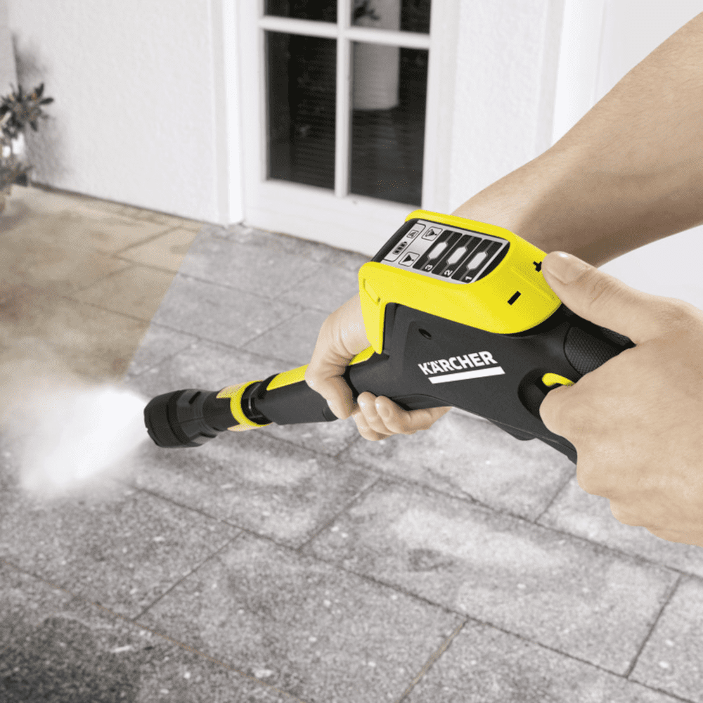 - Datorita pistolului inovativ cu butoane de comanda +/- pentru reglarea presiunii si a detergentului, afisaj LCD pentru a seta si vizualiza presiunea potrivita pentru fiecare suprafata intalnita.