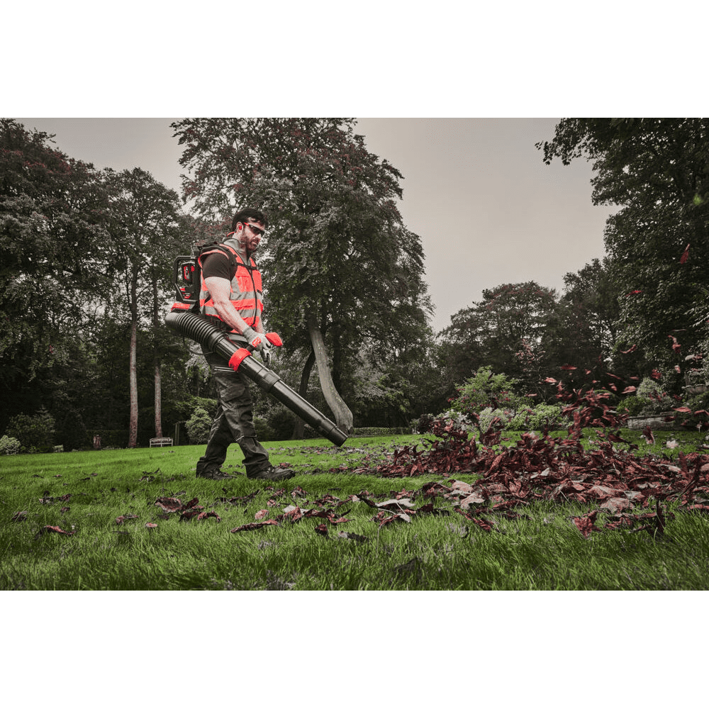 - Suflantă tip rucsac 2 acumulatori x 18 V, cu o pernuță pentru spate și curele reglabile și căptușite pentru un confort extrem de ridicat.