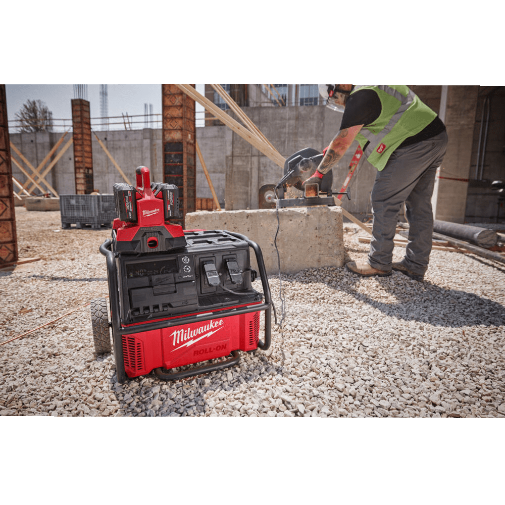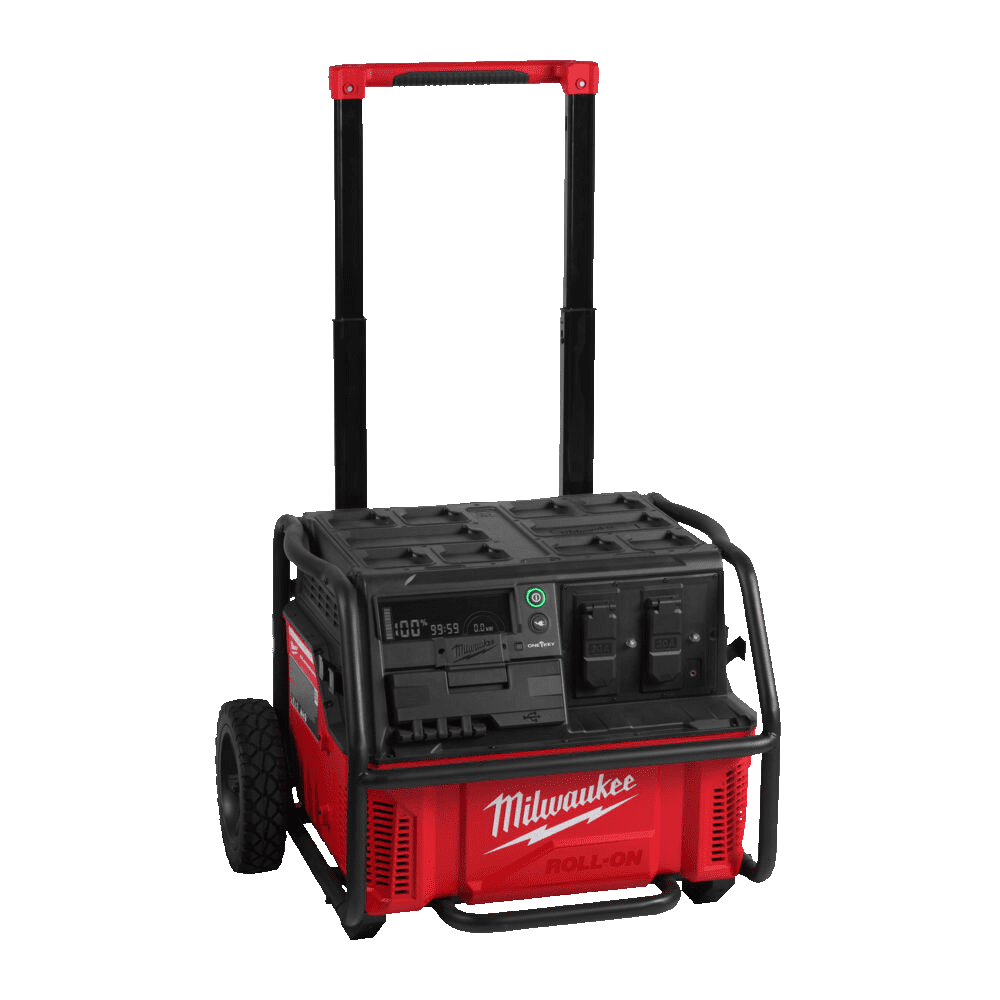 - Roțile și mânerul telescopic oferă putere portabilă oriunde și sunt pregătite pentru șantier.