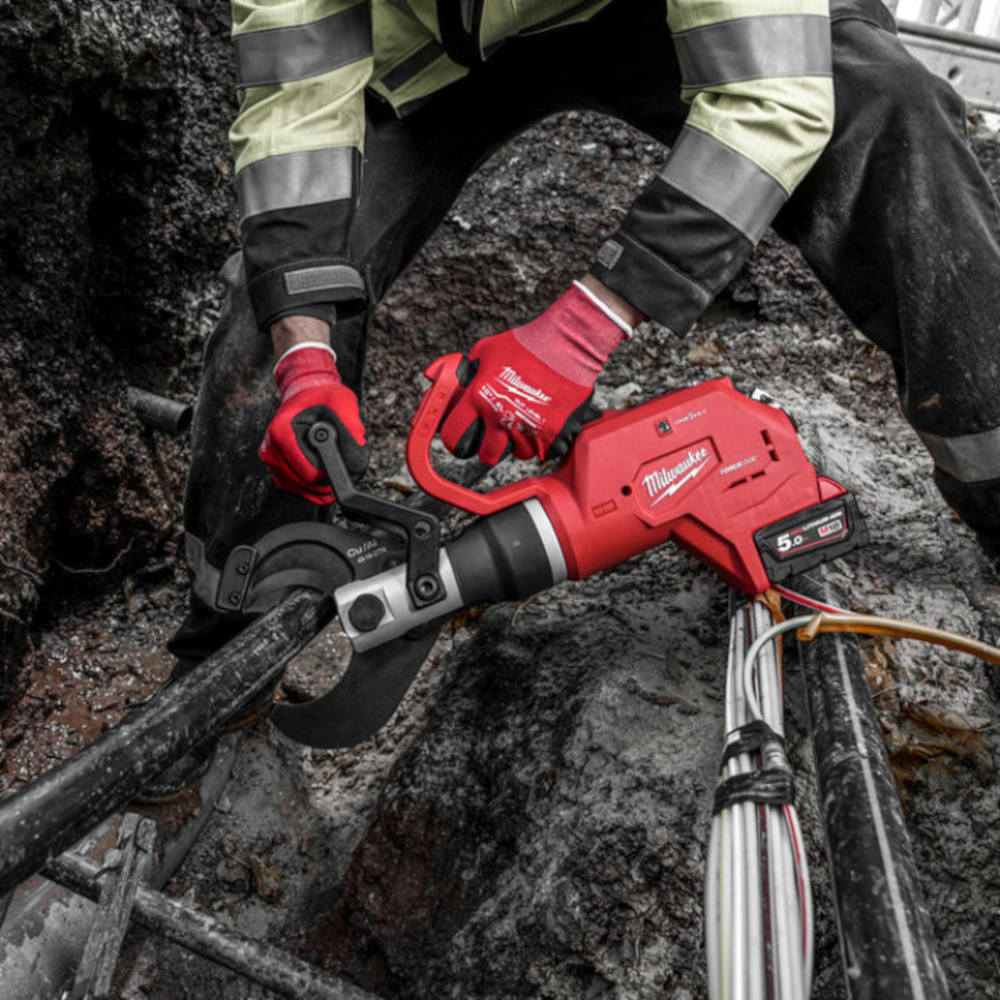 - Tăietorul hidraulic pentru cabluri subterane FORCE LOGIC™ taie cabluri în mai puțin de 10 secunde cu o forță de 77,8 kN